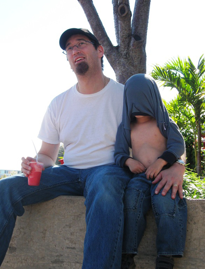 The Wolvog and Josh back when the Wolvog liked to pull the bottom of his shirt over his face and hang out.